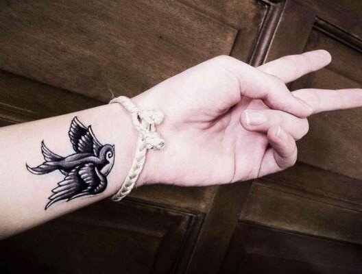 Особое место занимают те тату птицы, которые «примостились» на запястье у девушек. Ведь это одно из самых уязвимых и нежных мест на теле. Запястье практически всегда открыто миру, значит, татуировку увидят все, рано или поздно. Какой же символизм у такого рисунка?