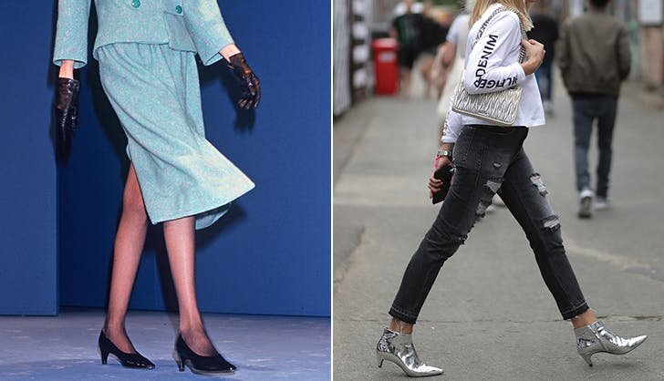 Прошло время, когда деловые костюмы, жемчужные ожерелья и членство в яхт-клубе считались невероятно шикарными. Или нет? Удивительно, но некоторые из самых знаковых тенденций стиля яппи возвращаются. Что ещё более удивительно, мы их одобряем на все 100 %. Вот как можно носить пять крутых модернизированных ретро-луков… и не выглядеть так, как будто вы вышли прямо из фильма с Джулией Робертс. №1. «КОШАЧЬИ КАБЛУКИ» Тогда: Практичные туфли с безвкусными толстыми каблуками, круглыми или квадратными носками, которые одобрила бы ваша бабушка. Сейчас: С заострёнными носками и минималистичным дизайном они стали элегантнее, и, если можно так выразиться, сексуальнее. Хотя лидерами тренда являются классические босоножки, нам особенно нравятся такие туфли. №2. ПАСТЕЛЬНЫЕ ТОНА Тогда: Бледные цвета были тошнотворно-сладкими и обычно сочетались с рубашкой-поло или водолазкой. И всё это, конечно, дополнялось свитером, завязанным на плечах. Сейчас: Традиционные сдержанные оттенки получили модный апгрейд.