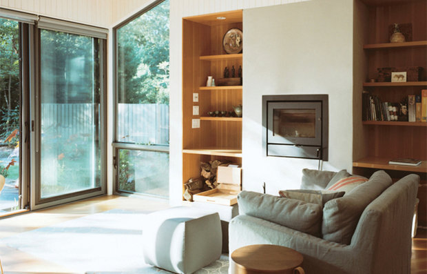 Как построить дом площадью меньше 50 квадратных метров, разместить в нем все необходимое для жизни и не ощущать себя при этом как в коробке . Если не гнаться за огромными размерами и сконцентрироваться на самом необходимом, окажется, что даже на небольшой территории можно обустроить абсолютно комфортный и уютный дом для жизни. Это удивительный и миниатюрный коттедж размером с гараж – достоверное тому подтверждение. Оригинальная скала При проектировании этого дома перед архитекторами стояла сложная задача, которую поставила заказчица, а именно: - не жить в коробке - простор и открытость пространства - сохранение интимности и уединения - ощущение близости к природе Довольно противоречащие пожелания, в результате которых проект сделали нестандартной формы. Сами архитекторы считают, что коттедж похож на скалу, вписанную в ландшафт. Данная форма здания была не только дизайнерским ходом, но и функциональным решением. Нестандартная форма крыши позволила установить дымоход дровяной печи, орг