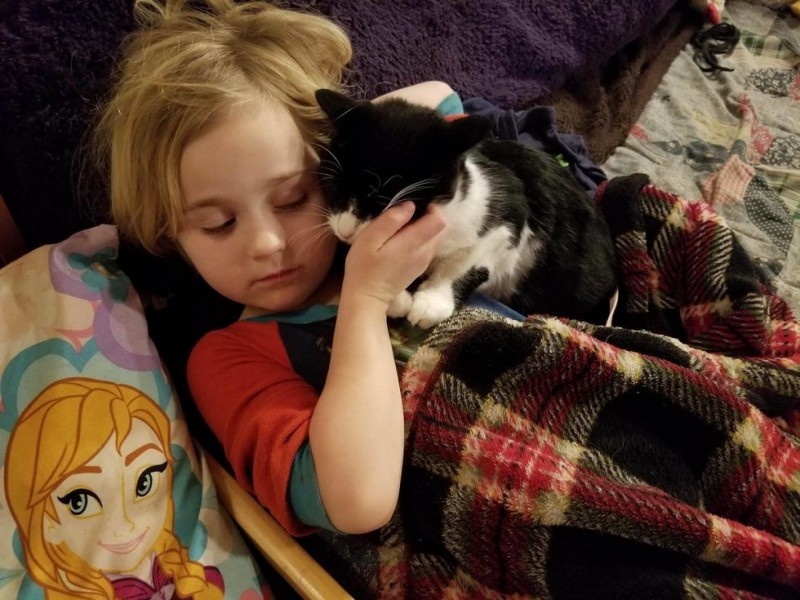 Спасенный кот был сильно напуган, пока не подружился с маленькой девочкой