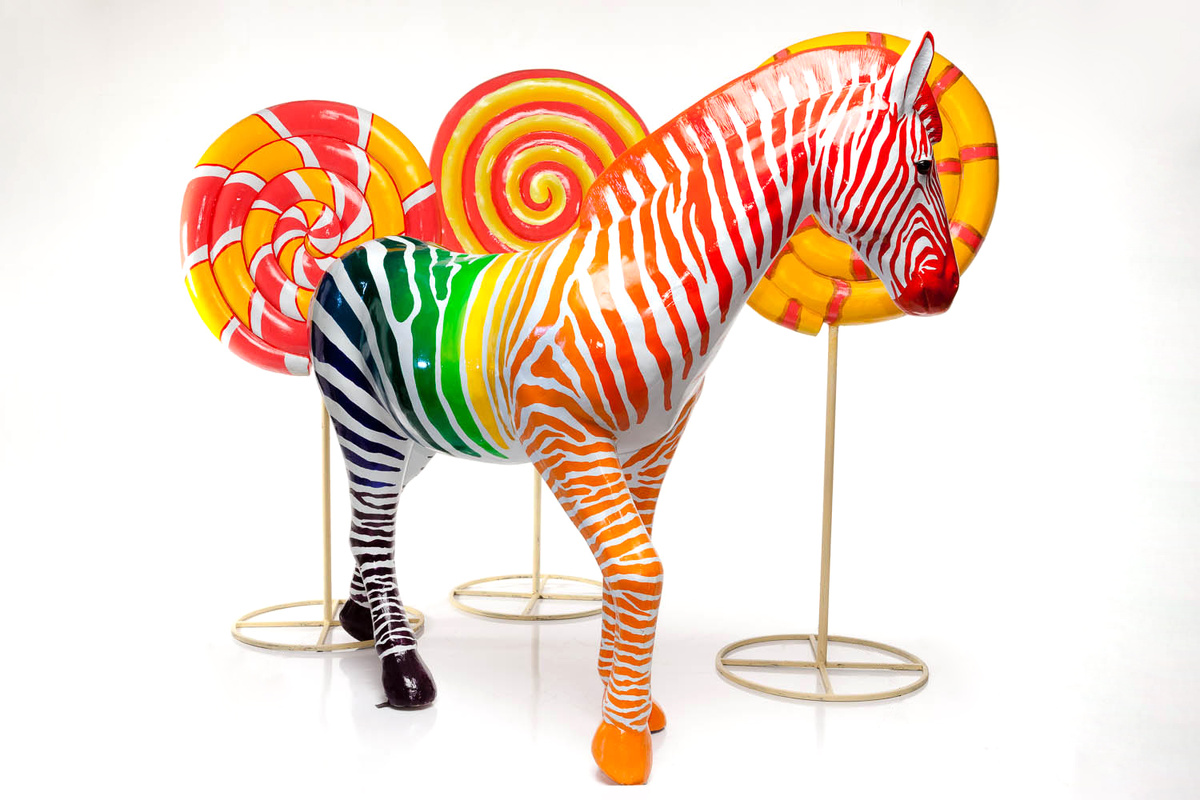 Рекламная фигура Зебра радуга привлекает внимание своей яркой и необычной покраской. Макет выполнен в натуральную величину, а высококачественные материалы гарантируют долговечность использования. Купить Зебру Радуга на сайте Студии Reklam.ru. Рекламная скульптура предназначена для оформления скверов, зеленых территорий, входных групп для заведений любого типа. Объемная статуя сделана из прочного и надёжного стеклопластика, поэтому её можно размещать на улице при любых погодных условиях. Безопасность материала делает возможным уставновку Зебры внутри любого помещения. Подобный рекламный ход - это современный способ привлечь клиента в кафе или ресторан, магазин или торговую точку.