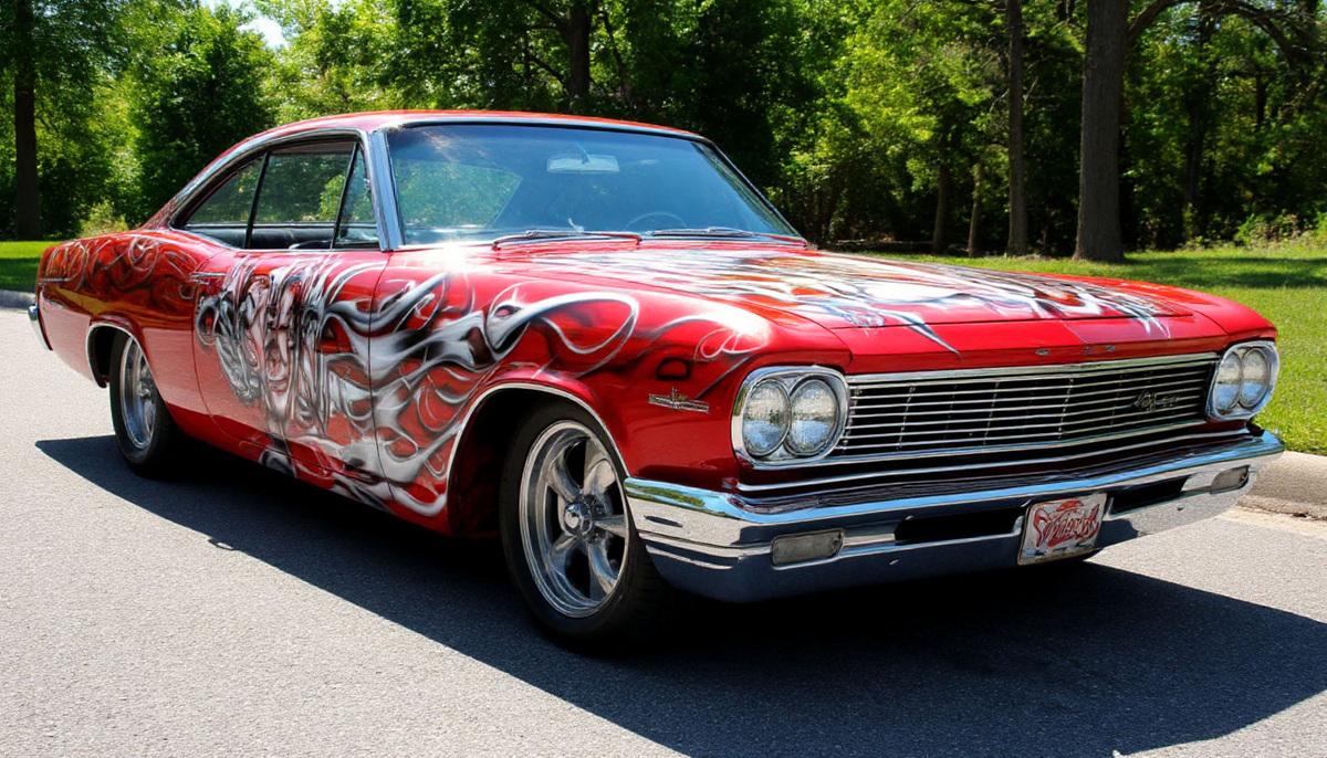 Используют или баллон с краской, или прибор под названием «аэрограф». Надёжность сцепления краски с поверхностью в этом методе уже доказана временем, и конкуренции среди обычных художественных вариантов украшения этому способу нет. С новым дизайном автомобиль выделяется из толпы. По рисункам можно прочитать даже характер владельца.