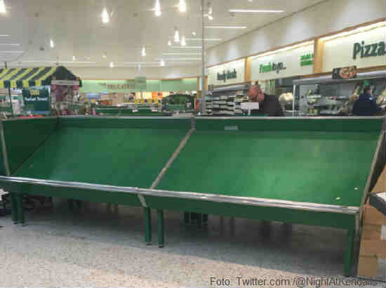 Пустых полок британских магазинов пользователи нарекли предвестником «Апокалипсиса»