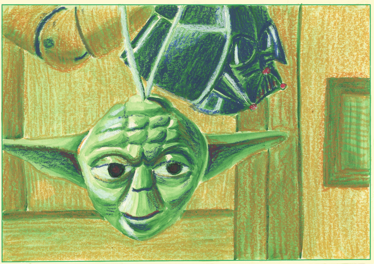 Взяла пару старых игрушек из киндерсюрпризов :)Зеленая гуашь + масляная пастель.