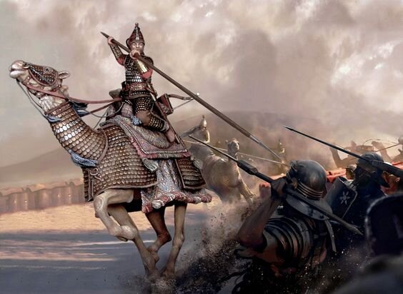 Парфяне - воинственный народ, прекрасные всадники и искусные лучники. Во время войн парфянская знать составляла тяжелую кавалерию, которые сметали врага мощным натиском, словно рыцари в Средневековье. Это были катафрактарии в тяжелых доспехах, носимых не только всадником, но и скакуном. Тяжелая конница была практически неуязвима для стрел, метательных камней из пращ и дротиков противника. Менее знатные воины и небогатые вассалы выступали в роли конных лучников на степных лошадях с выгнутыми луками. Пешее войско набиралось из ополченцев-крестьян и ополченцев с холмов. Подписывайтесь на телеграм-канал - t.me/battlez Как правило армия Парфянского царства (III век до н. э. - III век н. э.) выигрывала сражения благодаря лобовому таранному удару катафрактов при поддержке конных лучников. Тяжеловооруженные всадники атаковали рысью в плотном строю. И зачастую подобная атака являлась ложным маневром, чтобы заставить противника сомкнуть строй, облегчая тем самым работу для конных лучников. В р