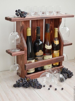 Привет всем!У хорошего друга намечался день рождения 21 января.Что дарить? не знал я.Деньгами, сертификат… это банально и не интересно.Пришла мысль сделать подставку для горячительного. Созвонился с товарищем, который тоже думает что подарить. Обговорил, прислал ему картинку с интернета с идеей. Он согласился, что это хорошая идея. Саморез потом прикрутил. незакрашенное вокруг надписи это слой клея, в живую незаметно так сильно.Размеры: ширина 55 см, высота 40 см, глубина 14 см По материалам:1.Бокалы для коньяка 68 руб. * 4 шт2. рюмки 11 руб.* 4 шт3. доски из дуба, были обрезки от лестницы у товарища.4.морилка, лак, также были5. наклейка-трафарет, заказал 150 руб6 пиво в подарок (на утро) — 53 руб за шт Работа по сборке, шлифовке заняло 4 часа.Инструмент: электролобзик, электро шлиф машинка, фрезер.Покраска 10 минут.Была задумана интересная упаковка, с сюрпризом (приколом), но это не передать словами или фотографиями. Запись пользователя proshev из сообщества Сделай Сам на DR