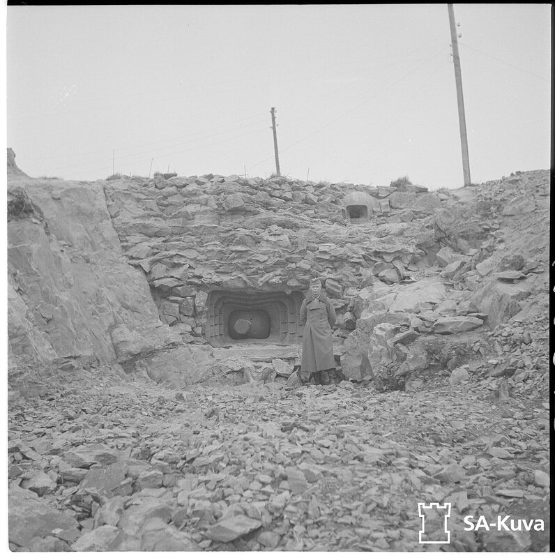 Известно, что финны использовали трофейные советские 76-мм казематные артиллерийские установки Л-17 в своих фортификационных сооружениях. Причем только в одиночной установке. Так по данным Станислава Воробьева на Свири финнами было использовано 4 установки в 4-х сооружениях в узле обороны в районе с.Вознесенье. Надо будет его обязательно посетить при случае. Выглядело это примерно вот так. Две установки Л-17 использовано в Медвежъегорске. Еще, как минимум 3 было использовано в р-не Первомайского на линии ВТ и в составе той же линии, как минимум одино сооружение с Л-17 было построено где-то на левом фланге. Итого получается известно 10 финских сооружений с Л-17. Вот у меня появилась мысль, не могли ли эти короба от Л-17 быть сфотографированными не там где они были затрофеены, а в месте новой установки. Скажем в Вознесенье? И еще немного трофейных Л-17 на финских фото. Деревня Кайяла, ныне поселок Токарево Советского муниципального округа Выборгского района. Л-17 установлена на