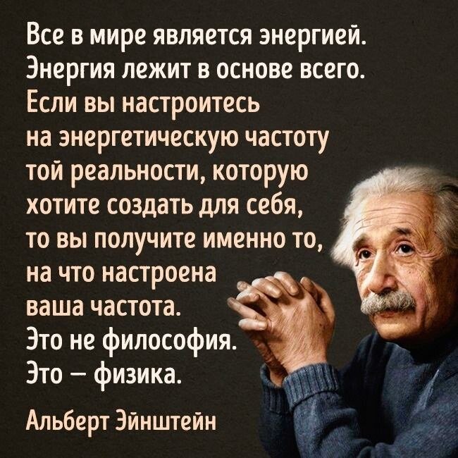 На частоте "с какой скорости взять старт, и с какой частотой работать ногами, при этом не разбирая что перед тобой бордюр, забор, и. т. д... Эйнштейн настроен был на Частотный резонанс, а именно: дать людям знания, которыми он владел, и при том чтобы они были использованы во благо Миру!! Ибо у всего есть две стороны два начала (Инь и Ян) во Вселенной всё Дуально, и симметрично!!! Андрей - Эмм... Глубоко