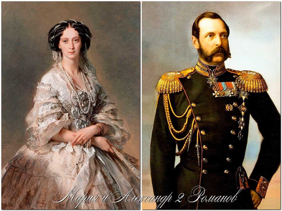 Александр II взошел на трон в 1855 году и был известен всем как освободитель, реформатор и очень влюбчивый мужчина. Одной из наибольших реформ великого императора была отмена крепостного права. В возрасте 23 лет наследник престола Александр Николаевич связал себя узами брака с 17-летней Максимилианой Вильгельминой Августой Софьей Марией Гессен-Дармштадтской, дочерью великого герцога Людвига II Гессенского. По принятию православия супруге наследника престола было дано имя Мария Александровна, а после вступления в брак она получила титул Великая княжна.