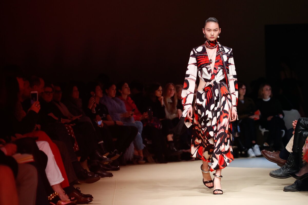 По традиции, финальные коллекции — самые яркие и запоминающиеся. По крайней мере, на Неделе моды в Париже сезона осень-зима 2018. Сара Бертон продолжает дело Алекандра Маккуина и основательно подходит к перекройке тэйлоринга, курс на который был взят еще великим гением своей эпохи. Нет, не подумайте ничего плохого: она чтит традиции и сохраняет все в лучшем виде, лишь немного разбавив маскулинную строгость силуэтов девчачьей фантазией. Черно-красная и бордовая гамма, звучащая доминантой на протяжении всего показа, производит сильное впечатление, поражая своей твердостью и неприступностью. Женственность легких тканей нивелируется oversize жакетами с мужского плеча, а в качестве главных аксессуаров выступают массивные кожаные ремни. Похоже, женственность потеряла свою привлекательность в глазах Сары Бертон. Дизайнер признается, что черпала вдохновение в природе, и именно — мире насекомых. Жизненный цикл бабочек — этапы трансформации от яйца до гусеницы и куколки — стали отражением этапо