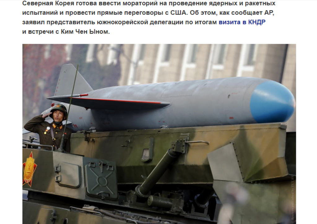 КНДР пообещала не бомбить Южную Корею и предложила отказаться от ядерных испытаний