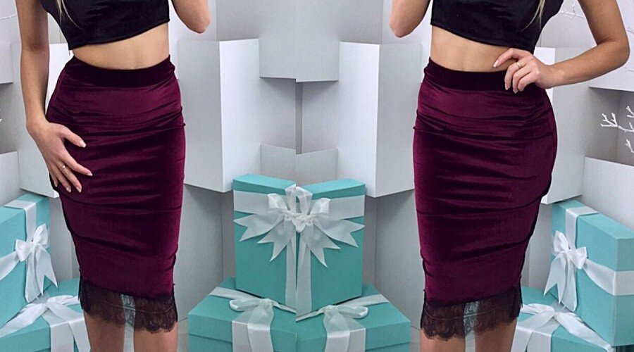 Одно из самых важных правил перед покупкой юбки из бархата – это правильный подбор. Очень важно учитывать рост и комплекцию дамы. От этого зависит 90% успеха. Ведь неправильно подобранная вещь, какой бы красивой она не была, не только не украсит женщину, но и может ее обезобразить.