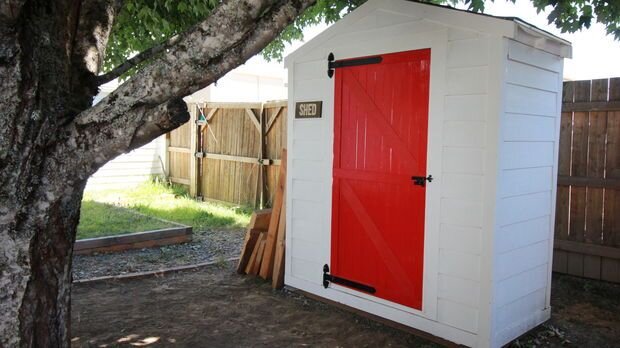 Вот такой замечательный сарайчик построила хрупкая девушка из Америки, довольно профессионально и аккуратно, но есть все же несколько недочетов.