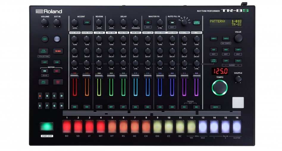 Roland выпустила новую драм-машину TR8S. Обновляя их популярное оборудование, они добавили некоторые дополнительные функции, включая SD-карту, для загрузки собственных пресетов, дополнительных звуков и пресетов предыдущей продукции Roland и секвенсора Motion. Новый экран позволяет пользователям редактировать звуки и эффекты, а новая панель Performance Pad позволяет вам регулировать чувствительные к скорости кнопки и воспроизводить звуки более реалистично. SD-карта также может хранить целые пресеты, шаблоны и настройки, чтобы вы могли брать SD в дорогу, а не весь блок. Новая рукоятка CTRL на каждом звуке может быть назначена различным параметрам, включая атаку, задержку, глубину LFO и многое другое, в зависимости от комплекта. Пользователи также могут изменять его независимо для каждого пресета. Наборы включают в себя классические 808, 909 и т. д. От TR8, но добавили больше стилей и звуков, основанных на жанрах, а также позволяют пользователям редактировать и сохранять пресеты или