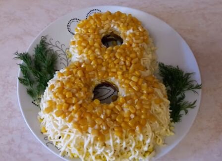 Салат очень сытный и очень вкусный за счет калорийности его составляющих. Можно сделать любой формы,но на 8 марта выложим именно так. Ингредиенты: Приготовление: 1. Заранее необходимо отварить свиное сердце, яйца. При этом их не солить. Дать хорошо остыть. 2. Для начала мы нарезаем лук средними кубиками. Следом трем морковь на крупной терке. 3. Оба эти овоща мы отправим обжариваться на сковородку на растительном масле. Туда же мы добавим два зубчика чеснока, мелко натертых. Чеснок добавляем в конце, когда морковь и лук готовы. 4. Обжариваем так, чтобы овощи стали мягким, золотистого цвета, а не превратились в кашу и не сильно зажарились. Обжаренные овощи мы перекладываем в салатник. 5. Переходим к подготовке следующих составляющих нашего салата. Трем отварные яйца на крупной терке, пересыпаем их в отдельную посудину. 6. Средними кубиками мы нарезаем маринованные огурчики. 7. Свиное сердце, желательно, порезать тонкими полосками. 8. Твердый сыр натираем на крупной
