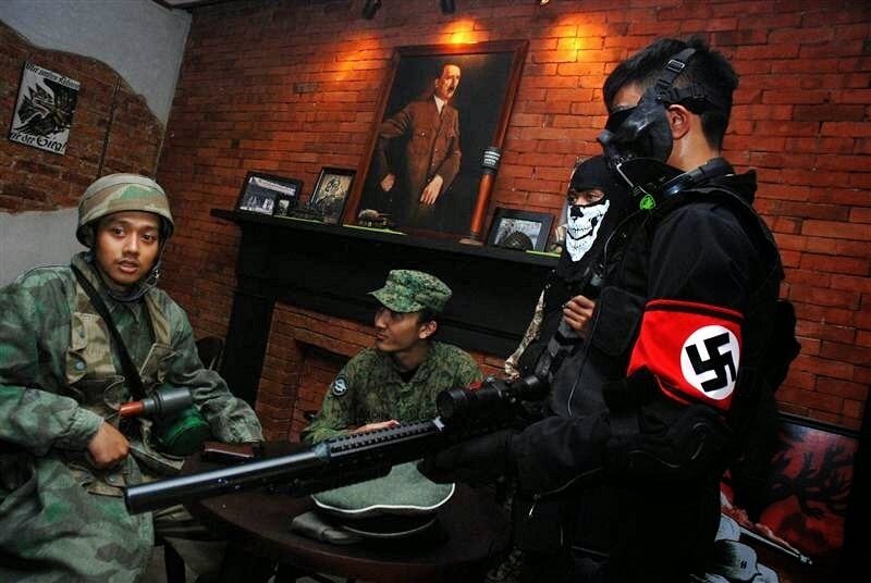 В одном из крупных городов Индонезии работает весьма интересное и очень спорное заведение. Кафе «Soldatenkaffee» выполнено в стилистике нацистской Германии и делает все возможное для того, чтобы посетители заведения смогли проникнуться атмосферой того времени.
