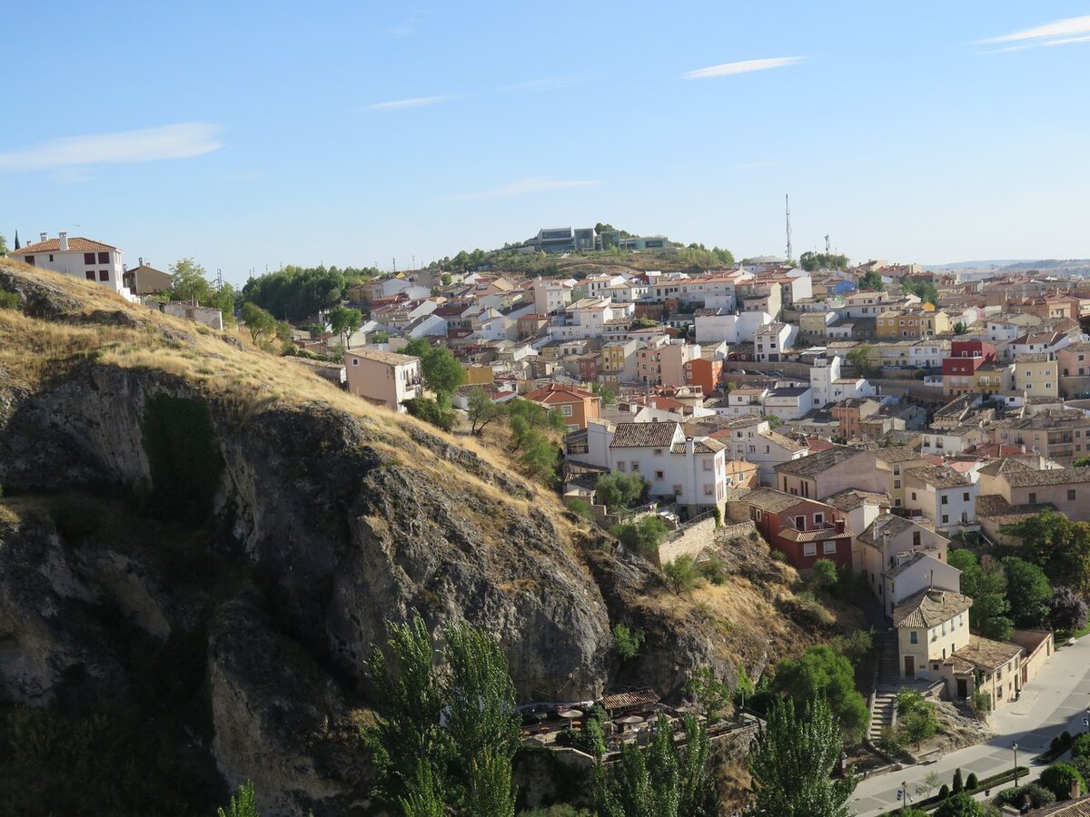 На высоте 956 метров над уровнем моря расположена средневековая Куэнка, мы посмотрим на окрестности северного склона. Старый город стоит на скале, окруженной глубокими ущельями. С обеих сторон его огибают реки Хукар и Уэкар. Мы посмотри на город в сторону Уэкар.