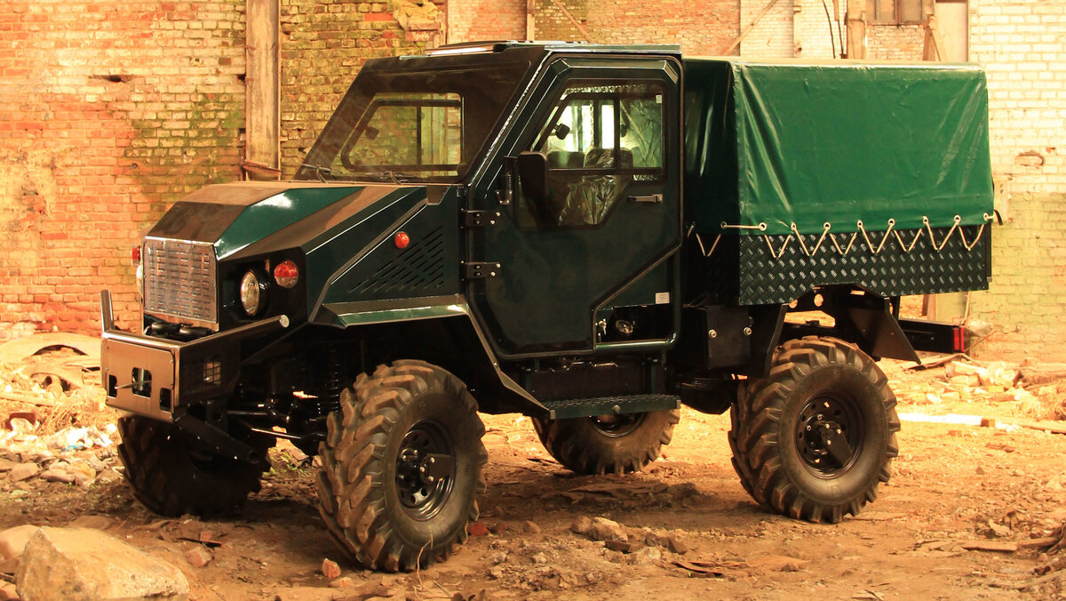 Кто, застряв в грязи на УАЗе, не мечтал поставить на него тракторный мотор? Мол, у тракторного дизеля отменная тяга на низах. Из любого болота вывезет. Но чудес не бывает. Тракторный двигатель на ульяновский внедорожник просто так не поставить, агрегат слишком тяжелый. А владимирская компания «Интеграл 77» решила эту задачу. В результате появился вездеход «Грибник», или Mushroomer. Кому как нравится. Поскольку у вездехода все детали российские и рожден он у нас в стране, я буду называть его именно «Грибник». Работы над машиной стартовали в 2013 году. «Грибника» создавали для лесников, охотников, рыбаков и геологов.Работы над машиной стартовали в 2013 году. «Грибника» создавали для лесников, охотников, рыбаков и геологов. Машина может преодолевать тяжелое бездорожье и перевозить до тонны груза в кузове. Плюс способна тянуть прицеп в сложных дорожных условиях. Двигатель производят на Владимирском тракторном заводе. Трехцилиндровый наддувный дизель воздушного охлаждения выдает 80 л.с.