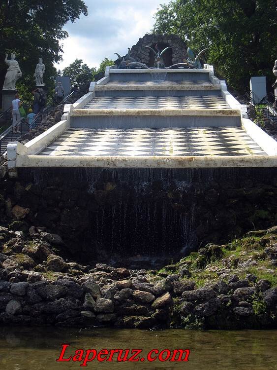 Каскад «Шахматная гора» находится на естественном склоне в Нижнем парке Петергофа. В середине XVIII столетия его сливные ступени расписали белыми и чёрными квадратами. Пётр I задумывал каскад как «Руинный»: он должен был представлять разрушенную крепостную башню. Внешний облик сооружения изменился в 1730-х годах. Вода вытекает из пастей драконов, скользит по четырём скатам и закрывает вход в нижний грот. На каменных пьедесталах вдоль «Шахматной горы» установлены десять мраморных статуй античных богов. В 1941 году скульптуры каскада сняли с пьедесталов и зарыли в землю. В 1953 году сооружение восстановили по рисункам конца XVIII столетия. Будем очень рады видеть вас, дорогие читатели, среди подписчиков нашего канала (подписаться можно сверху). Обязательно ставьте лайки - это важно для канала;) А эту и другие истории вы можете прочитать на сайте Laperuz.com