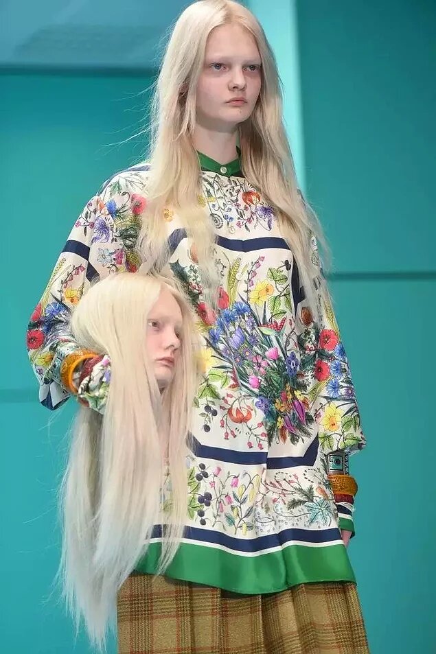Во время показа Gucci модели вышли на подиум с собственными головами в руках