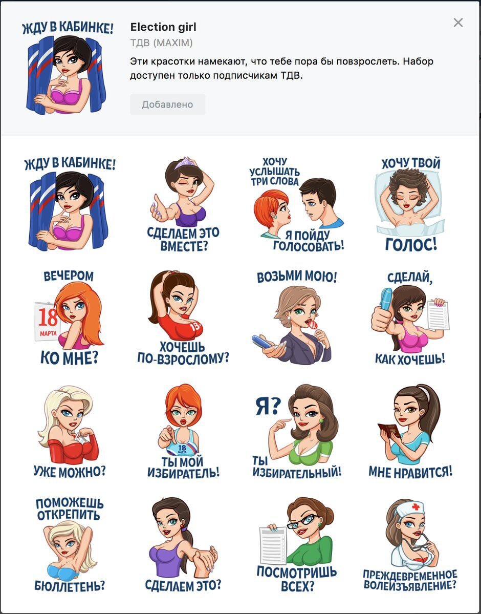 Lola Nabokova Отвратительно. При всей моей любви к халявным стикерам не буду их добавлять. Дмитрий Богданович Со дна в очередной раз постучали Анна Гребеникова Я думала, после РЕКЛАМЫ выборов ничего не будет хуже. Я ошиблась. Дмитрий Щербинин А где стикер с Грудининым? Я до этого стикерами не пользовался, но кандидат от народа же!