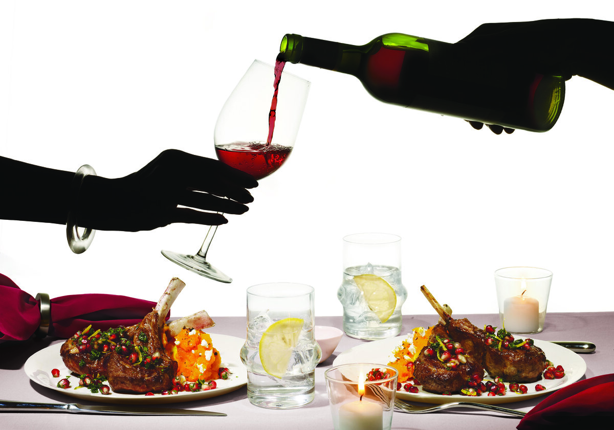 Припущенные ребрышки ягненка с гранатовой гремолатой На 2 порции // Подготовка: 15 минут //Приготовление: 10 минут 4 ребра ягненка (450 г) Морская соль 2 ч. л. оливкового масла 1 ст. л. лимонной цедры 1\2 чашки нарезанной петрушки 1\2 чашки гранатовых семечек Обваляйте ребра ягненка с обеих сторон в смеси соли и перца. Нагрейте ч. л. оливкового масла на сковороде до шипения. Добавьте ребрышки и жарьте до румяной корочки. Используйте щипцы для того, чтобы переворачивать ребрышки и подрумянивайте с каждой стороны по 1-й минуте. Затем переверните куски мяса и готовьте еще 3 минуты до желаемой степени готовности. Затем выложите мясо на блюдо и отложите. Тем временем в небольшой миске смешайте оставшиеся 1 ч. л. оливкового масла, лимонную цедру, петрушку и зерна граната. Приправьте по вкусу морской солью и черным перцем. Получившуюся смесь положите на каждую отбивную и подавайте к столу. Пищевая ценность: 444 ккал, 24 г жира, 6 г углеводов, 47 г белка, 1 г клетчатки, 60 мг кальция, 4 мг же