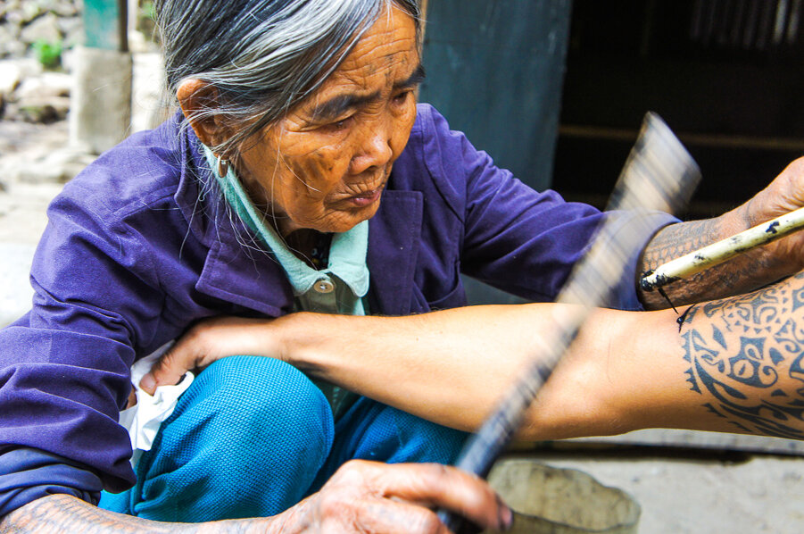Мы путешествовали на байках по Филиппинам, и я узнал о старушке татуировщице в дальней деревне. Очень древняя бабуля, живет в полном почете всей округи. Знакомьтесь, девяносто шестилетняя мастер татуировки Фанг Од.