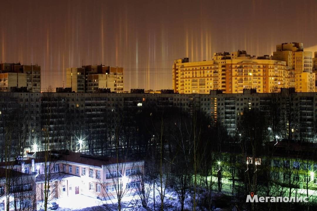 Сегодня ночью в Петербурге можно было наблюдать очень необычное явление — «световые столбы».