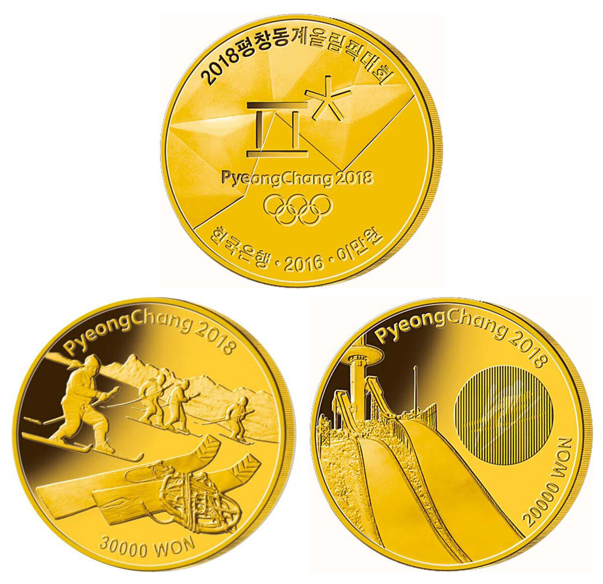 В честь ХXIII Зимних Олимпийских игр в Пхёнчхане 2018 года, проводившихся с 9 февраля по 25 февраля 2018 года, Банк Кореи выпустил 2 серии памятных монет. Набор первой серии был выпущен в "далеком" 2016 году и насчитывает 11 монет, который включает в себя: 1. Две золотых монеты, номиналами 30 000 и 20 000 вон. 2. Восемь серебряных монет, номиналом 5000 вон. 3. Одна латунная монета, номиналом 1000 вон. Вторая серия, выпущенная уже в 2017 году, представлена теми же монетными типами, однако, в наборе уже насчитывается 12 монет: 1. Две золотых монеты, номиналом 30 000 и 20 000 вон. 2. Одна латунная монета, номиналом 1000 вон. 3. 7 серебряных монет в 5000 вон. 4. Одна латунная монета, посвященная Параолимпийским играм 5. Одна серебряная монета, так же посвященная Параолимпийским играм.