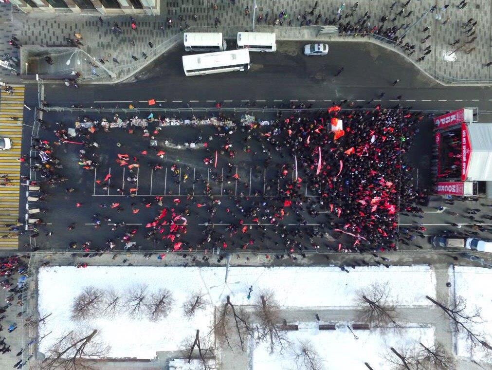 Площадь Революции в Москве, небольшая толпа с красными флагами стоит у сцены. Дрон сфотографировал митинг КПРФ с высоты птичьего полёта. Оппоненты коммунистов потешаются над этой картинкой и не без оснований. 20 февраля Зюганов сделал грозное заявление. Он говорил, что коммунисты покажут «волю и характер», проведут протестные акции по всей стране. Они потребуют честной избирательной кампании и прекращения «мочилова» Грудинина в СМИ. То есть повестка мобилизационная, призванная продемонстрировать кипение возмущенного разума красного электората. Но реальная картина этого «возмущения» совсем не впечатляет. СМИ пишут о 1000 участниках в Москве, а в регионах ещё меньше. Удальцов бравурно говорит о 5000 в Москве. Истина все-таки ближе к оценке СМИ: московский митинг прошел в формате «для «своих». И мобилизовать он смог только тех, кто и так придет проголосовать за Грудинина. Таким подходом не привлечь новую аудиторию и уж тем более не напугать власть. На лицо комичный контраст между грозны