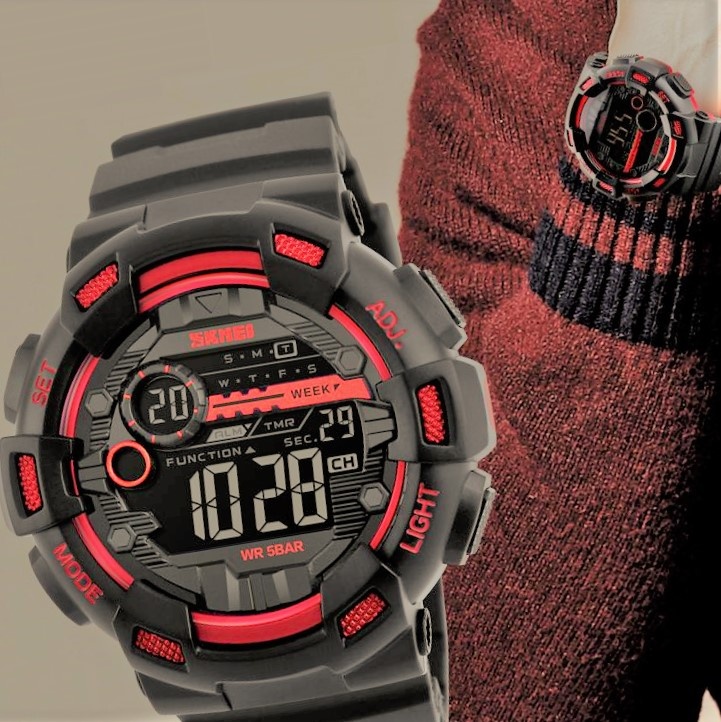 Отличная вещь для мужчины, которая может похвастаться высокой степенью влагозащиты. А еще этот гаджет имеет на борту яркий светодиодный дисплей. Резиновый ремешок полностью регулируемый, внутри - емкая батарея, ее хватает в среднем на 1 год использования. С часами можно заниматься дайвингом, они выдерживают достаточно высокое давление. Часы выполнены из силикона, что обеспечивает комфорт носки и регулировки. Все функциональные настройки можно задать при помощи клавиш на корпусе. Тут и день недели, и подсветка, и секундомер. На выбор предлагается только 1 цвет - черный. Доставка товара в Россию - бесплатно за 2-3 недели. Стоимость - 828 рублей.