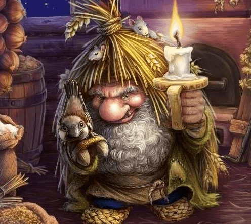 Духи населяли не только леса и воды. Известно немало домашних божеств – доброхотов и доброжилов, во главе которых стол домовой, живший либо в подпечье, либо в лапте, повешенном для него на печь. В новый дом домового переносили в горшке с углями из старой печи, повторяя при этом: « Домовой, домовой, пойдем со мной!». Домовой покровительствовал хозяйству: если хозяева были старательны, об к благу прибавлял благо, а за лень наказывал бедой. Считалось, что с особенным вниманием домовой относился к скотине: по ночам расчесывал гривы и хвосты коней (а если сердился, то наоборот спутывал шерсть животных в колтуны) он мог отнять молоко у коров, а мог сделать удой обильным, он имел власть над жизнью и здоровьем новорожденных домашних животных. 1.ДОМОВОЙ По русскому поверью живёт за печкой, покровительствует своим и преследует чужих. Иногда живёт в банях (банный), гумнах (гуменник, подовинник, рижник); покровительствует любимым домашним животным, редко показывается человеку, космат и оставляет