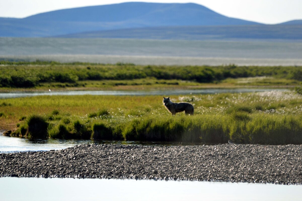 В отличии от устоявшихся стереотипов, представляющих волка сильным, жестоким и безжалостным хищником (каковым он по сути и является), бывает и так, что и волка впору пожалеть. Например, как этого молодого волчка встреченного мной летним утром в безлюдной местности неподалёку от истока реки Анадырь. Ну, какой он лютый и безжалостный? На чем только шкура держится...