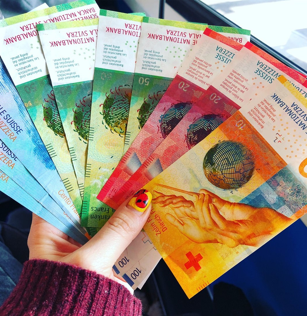 На фото швейцарские франки , курс 1 франк = 60,75 рублей