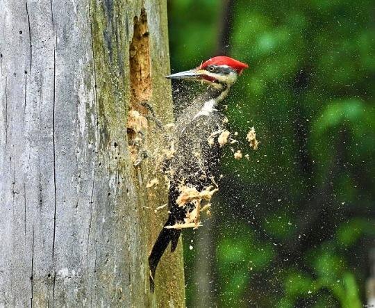Скорость движения головы дятла во время долбёжки дерева равна 6 м в секунду. За это время они успевают сделать до 10 ударов. Как птицам удаётся не причинять себе вреда и вообще оставаться в добром здравии? Множество учёных трудятся над изучением данного феномена. В начале 2000-х годов над исследованием головного устройства дятла усиленно трудились американские учёные. Однако тогда они удостоились Шнобелевской премии. Примерно через 10 лет, в 2013 году, китайские биологи раскрыли секрет дятлов. Оказалось, что мозг птиц от сотрясения защищает несколько факторов. Во-первых, мозг у дятлов очень плотно прилегает к черепу. Поэтому у него нет места для движения. Также орган расположен не горизонтально, а вертикально, за счёт чего нагрузка распределяется на большей площади. Также при ударе птица слегка поворачивает голову, что влияет на распределение действующих сил. Во-вторых, между клювом и черепом птицы находится прослойка губчатого вещества. Это служит смягчающим материалом. Кроме этого,
