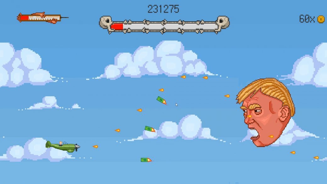 Данный шедевр можно купить всего за 42р ПУТИН 20!8 - это новая инди игра, что даст шанс почувствовать себя героем, игра - в которой ты играешь в качестве бывшего агента КГБ, одного из самых влиятельных людей мира по версии Форбс - президента России, Владимира Владимировича Путина. Будь смел, решителен, мудр и возьми на себя роль главнокомандующего воздушным боем против многочисленных врагов Российской Федерации ( Под «врагами Российской Федерации» подразумеваются рэпер Face, Дональд Трамп, Юрий Хованский, само собой, Навальный и почему-то биткоин. ). Для прохождения миссий, будет необходимо проявить умения быстро реагировать, уклоняться и наносить ответный удар. Во время игры, ты сможешь управлять разными самолётами, а также улучшать их! Будь готов ко всем сложностям этого невероятного пути, ведь твоя судьба преподнесёт тебе не мало интересного и захватывающего. Будь настоящим лидером, готовым ко всем испытаниям! -У тебя на вооружении доступно 3 самолета. -Доступно большое количеств