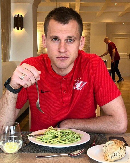 - Если вечером тренировка, Ребров обязательно ест на обед пасту из твердых сортов пшеницы: добавляет туда 1-2 ложки оливкового масла, соус песто и посыпает тертым пармезаном. Плюс кусочек зернового хлеба со злаками.