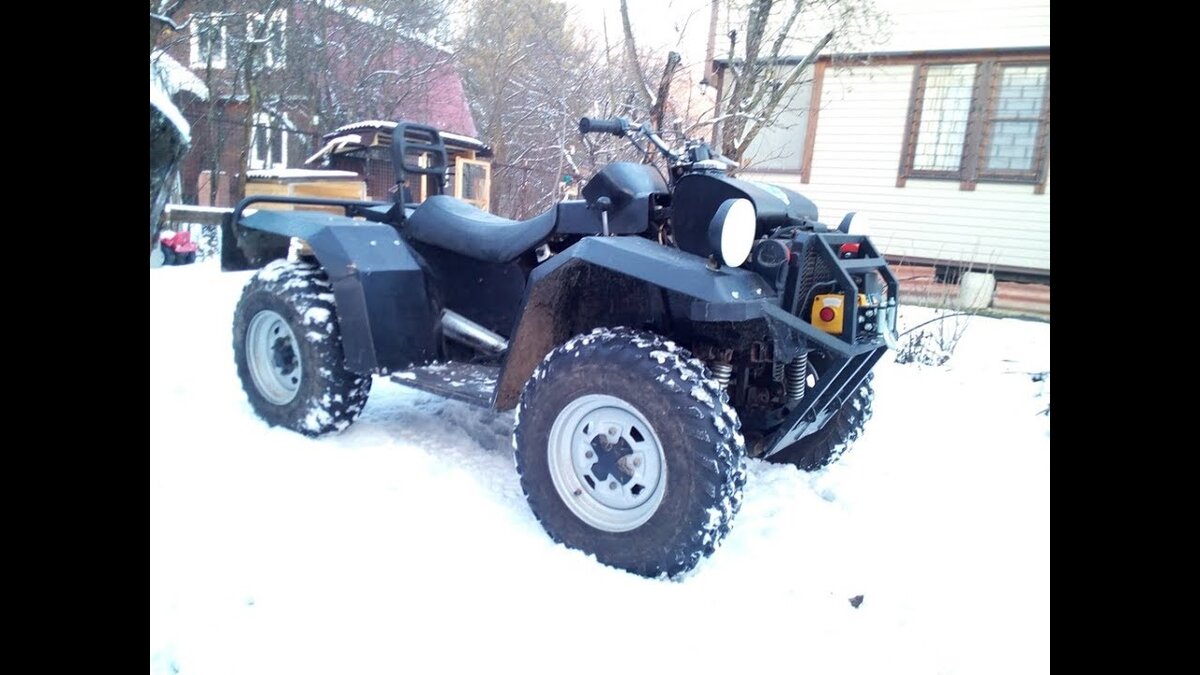 Обзор самодельного квадроцикла построенного еще в 1992 году В 2015 году заменили колеса и оперение, так же был заменен кенгурятник. Отличный помощник уже дватцать шесть лет. Переключаемый полный , задний или передний привод.