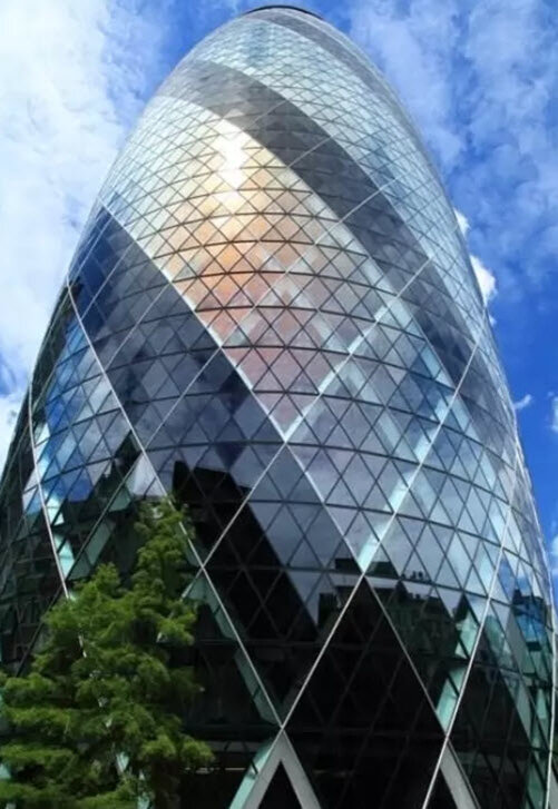 30 St Mary Axe - популярная достопримечательность Лондона. Это 41-этажное здание с поразительной архитектурой. Здание также известно как «The Gherkin» из-за его отличительной криволинейной формы. Это также первый экологически чистый небоскреб в Лондоне. Его застекленная конструкция обеспечивает естественную вентиляцию.