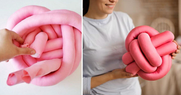 Небольшие квадратные подушечки, которые обычно лежат на диванах или креслах в каждом доме, создают необыкновенно уютную, теплую и камерную атмосферу в гостиной. Но мало кто знает, что диванные подушки могут иметь необычную, оригинальную и при этом невероятно эффектную форму. В последнее время все большую популярность приобретают узловые подушки. Они делаются из длинных и мягких труб, связанных в причудливые узлы. Неизвестно, какому именно дизайнеру принадлежит эта потрясающая идея, но результат получился просто превосходным. И, самое главное, эти стильные предметы интерьера очень легко сделать своими руками из подручных средств. Как сделать современную декоративную подушку-узел Вам понадобятся: • 2 пары детских колготок из трикотажа;