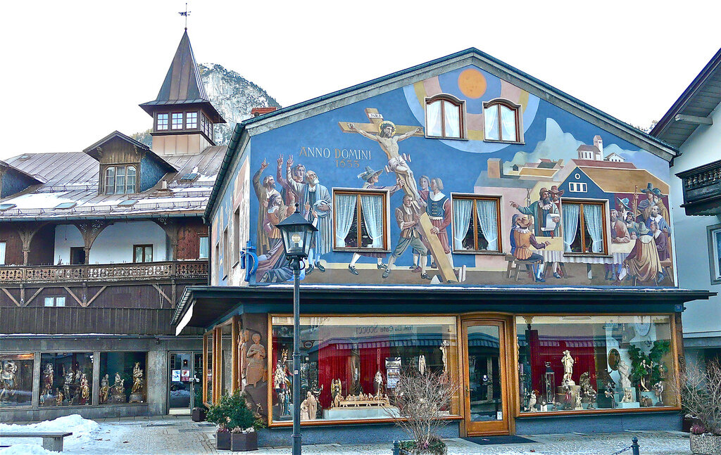 Обераммергау – живописная альпийская деревня в Баварии, в 90 км от Мюнхена, входит в список всемирного наследия ЮНЕСКО благодаря домикам своих жителей, почти каждый из них расписан красочными сюжетами на религиозную тематику или на мотивы немецких сказок. В 1633 г. во время Тридцатилетней войны эпидемия чумы унесла жизни трети населения, в церкви у алтаря жители дали обет каждые 10 лет всей деревней устраивать мистерию Страстей Господних. Первое представление дали на Пасху 1634 года в местной церкви. Участвовало 80 человек. Чума пошла на спад, а скоро и вовсе прекратилась. С тех пор обет выполняется неукоснительно. Из соображений удобства круглых дат после 1674 года следующее представление было проведено раньше – в 1680 году, и далее каждые 10 лет, следующее – в 2020 г. Начиная со второй постановки, все представления проводились под открытым небом и дома являют собой сцену, соответствующим образом декорированную. В 1930 году был построен большой павильон для проведени