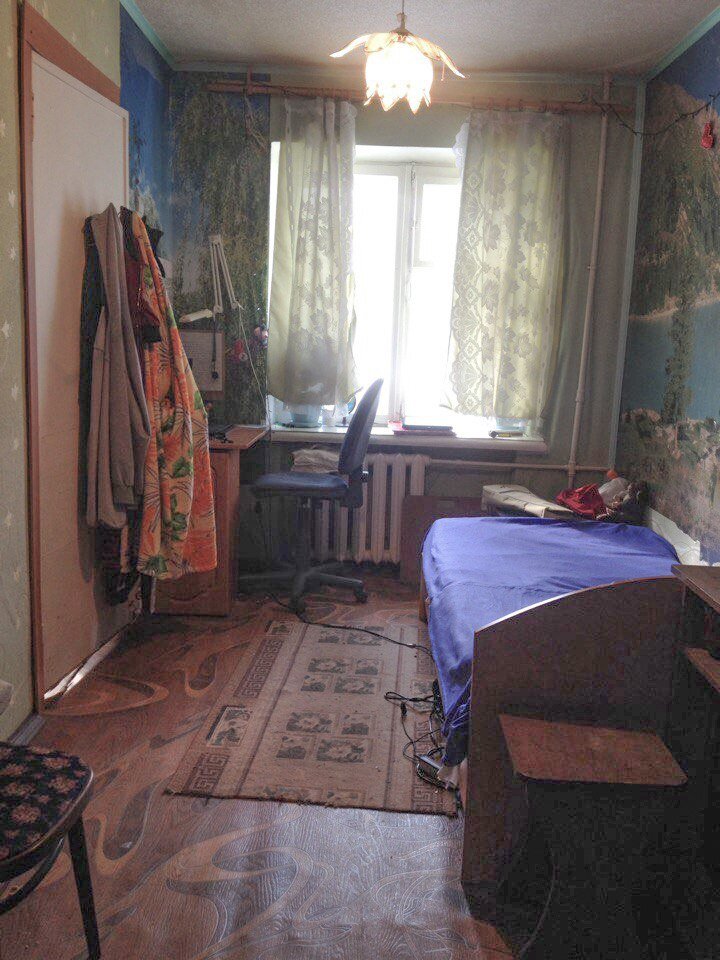Комната молодой девушки-студентки. Хрущевка. Бабушка с дедушкой - в одной комнате, заказчица - в другой. Задача, как всегда, не проста, необходимо уложиться в минимальный бюджет, создав, при этом, комфортные условия существования. Как минимум. Но минимум нас не устраивает. Конечно, арт пространство, рабочий кабинет и спальню вполне возможно объединить в одном помещении. Но у нас 10,5 квадратных метров! Спустя несколько напряженных часов работы, оказалось, что все возможно:) Помещение сейчас: Шкаф-купе трогать не будем. Почти. Мы его только приведем к виду, который нам необходим. Рабочая зона на данный момент: Книги в этой семье не объект интерьера, отнюдь. Проект: План помещения: Шкаф на месте, рабочая зона у окна, кровать - полуторка посередине . Справа от кровати - зеркало с туалетным столиком. Девушка, все-таки. На левой стене разместили крючки и вешалки для одежды. На самом деле это - весьма удобно, есть некоторые вещи, которые и в шкаф не спрячешь, потому что постоянно