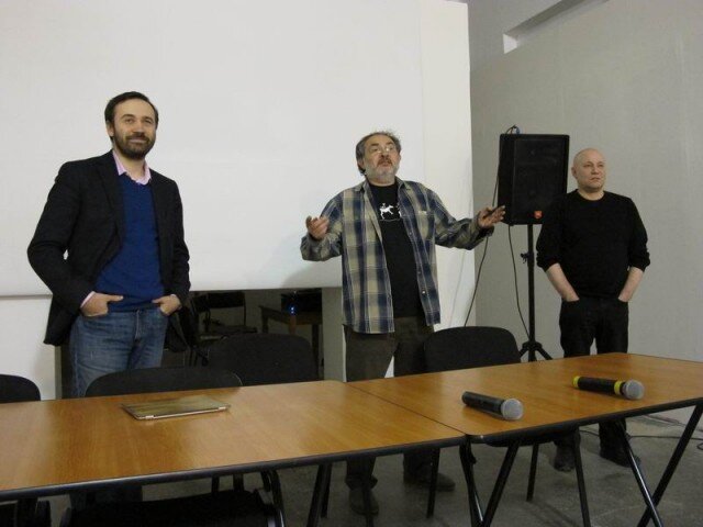Вечер прошел при участии специального гостя Ильи Пономарева, сопредседателя движения «За честные выборы» в контексте современной репортажной фотографии Константина Рубахина. Его персональную выставку можно было посмотреть в зале где проходила встреча .