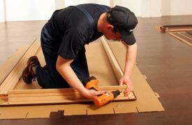 Начнём собирать коробку. Для работы вам понадобится. Шуруповёрт, ножовка, рулетка и самарезы. Снимаем размеры.Если высота двери 200 см. то 2 палки отрезаем по 200 см. и 6 мм. Если ширина 60 см. то палки готовим по 60 см и 6 мм, это можно сделать из одной палки. Палки резать под углом 45 градусов, все размеры с внутренней стороны коробки. Теперь будем скреплять наши палки. Берём шуроповёрт и закручиваем наши палки на саморезы.