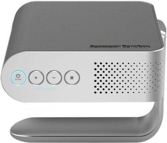 ViewSonic M1 – крошечный проектор с аккумулятором, который создает на стене очень большой экран, при этом обеспечивая еще и очень качественный звук. У проектора ВьюСоник M1 даже штатив умный. Он служит опорой проектору во время демонстрации, а в сложенном состоянии играет роль крышки для объектива. ViewSonic M1 — ультрапортативный светодиодный проектор. С размерами 148x41x126 мм его можно считать практически карманным. Но вес 700 грамм свидетельствует о высоком качестве материалов. Стоит присмотреться к внутреннему оснащению, чтобы убедиться, насколько серьезным был подход к созданию столь крохотного прибора. При потребляемой мощности 55 Вт заряда встроенного аккумулятора хватит на 2,5 часа, а LED-лампы более чем 30 000 часов работы (конечно, срок ее службы зависит от интенсивности использования). Прекрасно и то, что ViewSonic M1 — вещь мобильная и от проводов не зависящая. Так что брать его с собой можно куда угодно. Главное, чтобы было место, где его установить. Подставка у ViewSon