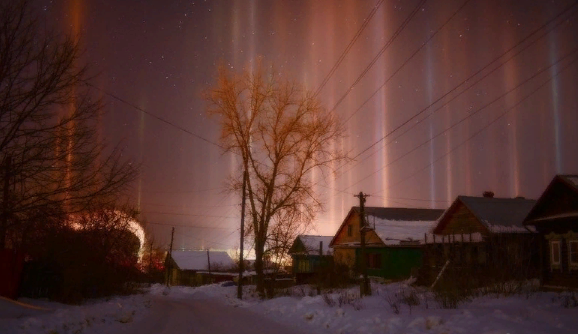 «Зима не даром злится, прошла ее пора», некогда писал Федор Тютчев, видимо наблюдая, как и россияне средней полосы сегодня, резкое похолодание в преддверии весны. Причем «злится зима», как пишут россияне в Сети интернет, по-настоящему. Более того, таких холодов здесь не видели отроду. Но не только морозами в 30 градусов и более ознаменовались последние дни в европейской части России, люди столкнулись и с нечто необычным Например, жители райцентра Вязники Владимирской области впервые наблюдали такое редкое природное явление, как «световые столбы», которые очень похожи то ли на северное сияние, то ли вообще на мистику. Особенно если в вашей местности такого «светопредставления» не было никогда. Житель Вязников Максим Сухов сфотографировал это уникальное для Владимирской области явление в 5 часов утра 25 февраля, когда случайно вышел на улицу в такую рань и был поражен увиденным. Вот что он говорит: Первой впечатление – северное сияние. Однако откуда оно в Вязниках, то есть в средне