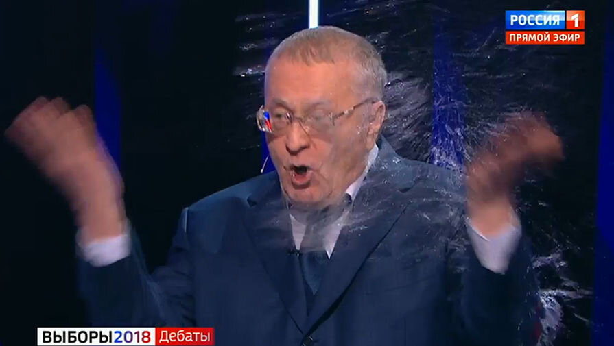 «Участники «Дома-2» ведут себя приличнее, чем вы», - парировала Ксения Собчак. Жириновский продолжил оскорблять ее, за что был облит водой.