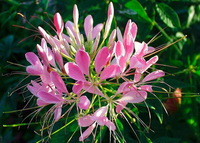 Волшебный чарующий запах и восхитительная нежность цветов Растение-паук – так переводится название этого удивительного цветка с немецкого языка. Необычные соцветия выглядят как взрыв, всплеск шампанского. Палитра разнообразна: белая, желтая, любые оттенки розового, красного. Эффектная красота цветов, чарующий аромат, а так же то, что растение цветет с июня по сентябрь – качества, благодаря которым цветоводы обращают внимание на клеому. Мощный стебель достигает высоты 1,5 м, густо покрыт листочками. Не сломается даже от сильных порывов ветра или дождя. Вершину стебля венчает соцветие удивительной красоты. Эти высокорослые растения хороши для создания живой изгороди, играйте сочетанием цветов в сольных посадках, комбинируйте с другими растениями – полет фантазии безграничен. Больше о клеоме.