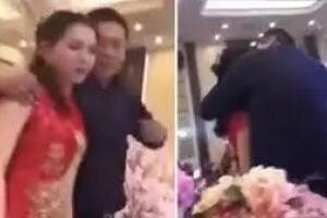 На ролике видно, как свекр сопровождает девушку на сцену, чтобы, видимо, произнести поздравительную речь. И тут начинается самое интересное!
