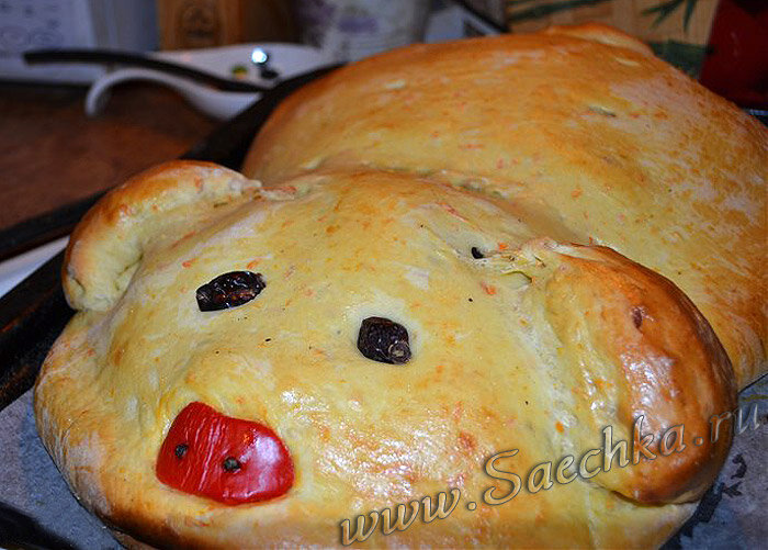 В рецепте изначально вроде было порций 12, но мой пирог рос на глазах. В этой кулебяке 5 начинок, как раньше говорили "углов". Ингредиенты: Тесто для кулебяки: Начинки для кулебяки: Прослойка: Оформление кулебяки в виде поросенка: Как приготовить: